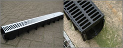 Tunnel channels are used in those location in order to drain as fast as possible the surface water. They form a perfect kerb. |